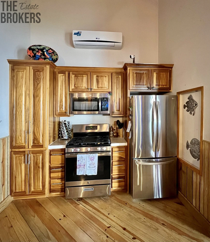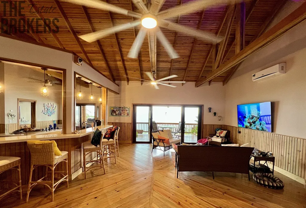 New Latitude je moderní dům v ostrovním stylu s výjimečným výhledem na korálový útes a Honduraskou pevninu. Jedná se o směs betonu a dřeva. Postaveno podle amerických standardů s prvotřídními povrchovými úpravami, plně vybaveným a velmi detailním dekorem s Karibskými prvky. Dům se bude prodávat kompletně zařízený s výjimkou uměleckých děl a osobních věcí. Tento nově postavený rozdělený designový dům byl postaven podle amerických norem; byl dokončen na konci roku 2019, jsou zde 3 ložnice, 2 plné koupelny a 2 poloviční koupelny, s prostornou kuchyní, která prochází do obývacího pokoje a ukazuje své klenuté stropy pro skvělou zábavu. Obě velké sprchy jsou venkovní s výhledem na Karibik, vaše letní pohodlí je