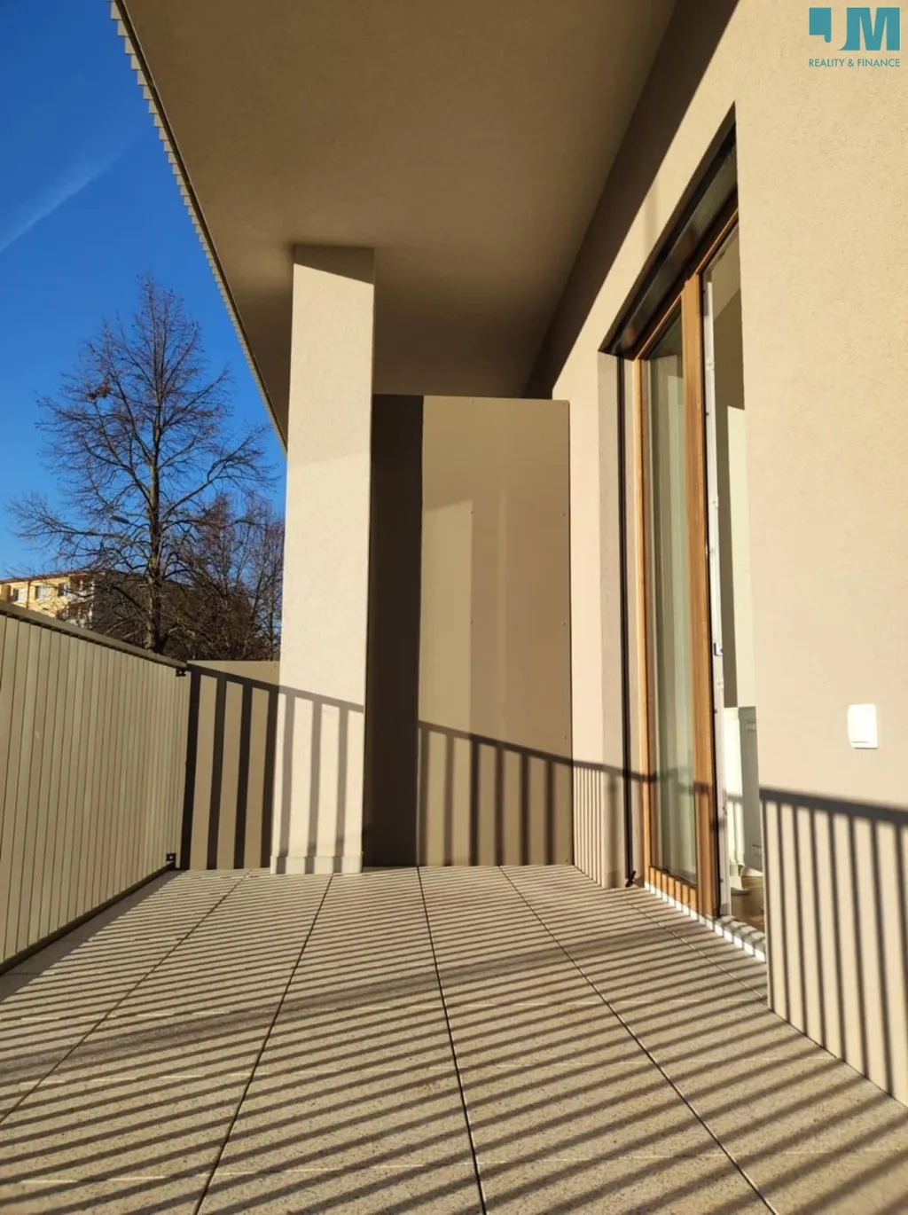 Byt moderního designu o rozloze 67 m2 je umístěný ve 1.NP, je s terasou 6 m2 a pěknou zahrádkou 50 m2. Je prostorný, prosvětlený, vzdušný. Budova je úsporné třídy B, kvalitní materiálové provedení, plastová okna - izolační trojsklo, venkovní žaluzie, plovoucí podlahy, keramika, prostorná koupelna s vanou, závěsným topným žebříkem, umyvadlem a se závěsným WC. Byt má vybavenou kuchyňskou linku se sporákem a varnou deskou.