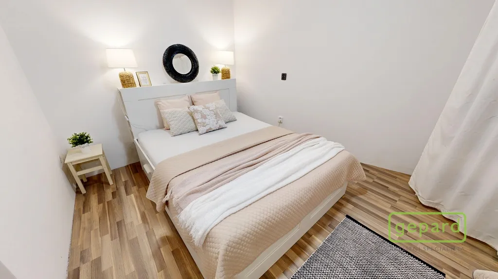 Byt disponuje prakticky řešenou dispozicí, která efektivně využívá každý metr prostoru. Najdete zde obývací pokoj s kuchyňským koutem, samostatnou ložnici a koupelnu s toaletou. Interiér je řešen v moderním a čistém stylu s důrazem na funkčnost. Kuchyňská linka je vybavena spotřebiči a nabízí dostatek pracovního i úložného prostoru. V bytě jsou také praktická úložná řešení, která zvyšují komfort bydlení.