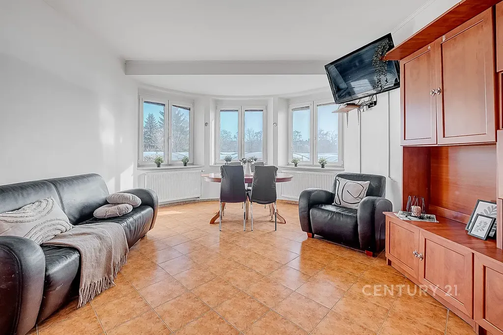 Byt se nachází v přízemí poctivě postaveného domu. Dominantou hlavního podlaží je velkorysý obývací prostor s možností rozdělení na dvě samostatné místnosti a přípravou pro krb, odkud je přímý vstup na prostornou terasu. Na obývací část navazuje jídelna s kuchyňským koutem, dále chodba s vestavěnými skříněmi, další pokoj a koupelna s WC. Interiér je vzdušný, příjemně prosvětlený a působí velmi útulně.