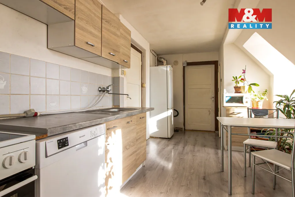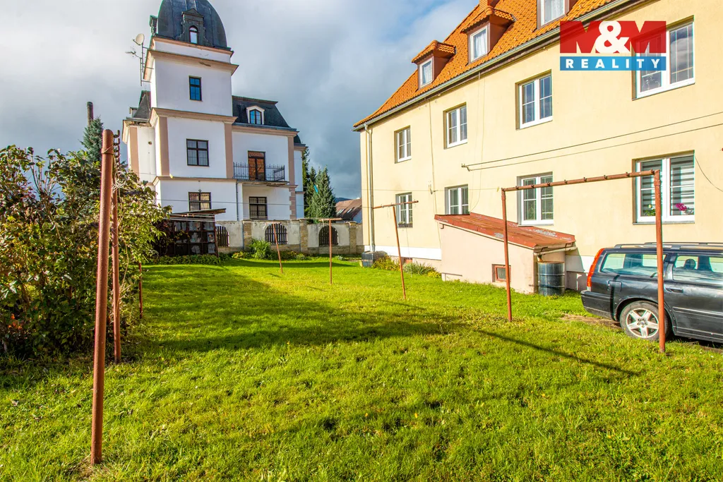 Byt v osobním vlastnictví o rozloze 65 m2 včetně vlastní zahrady 151 m2 v malém bytovém domě v klidné části Cvikova. Podkrovní byt se v současné době využívá jako 3+1. K bytu také náleží velký sklep - 9 m2 a venkovní kůlna - 8 m2, podíl na společné zahradě a navíc i vlastní zahrada (151 m2). Samotná plocha bytu je 56 m2, včetně příslušenství 65 m2 + kůlna. Vytápění bytu je zajištěno plynovým kotlem, ohřev vody bojlerem. Dům je zateplen a je zde hotová střecha. Parkování je možné přímo na pozemku u domu. Podkroví je zatepleno a bylo zde před několika lety řešeno topení, el. rozvody, odpady, atd. Dům nabízí klidné bydlení v blízkosti centra města s veškerou občanskou vybaveností – MŠ, ZŠ, obchody, zdravotní středisko, pošta. Cvikov se nachází na mezinárodní silnici E442, 5min do České Lípy a 30 min do města Liberec. Byt je vhodný jak pro vlastní bydlení, tak jako investice s možností pronájmu. Nájemníka Vám zajistíme.
