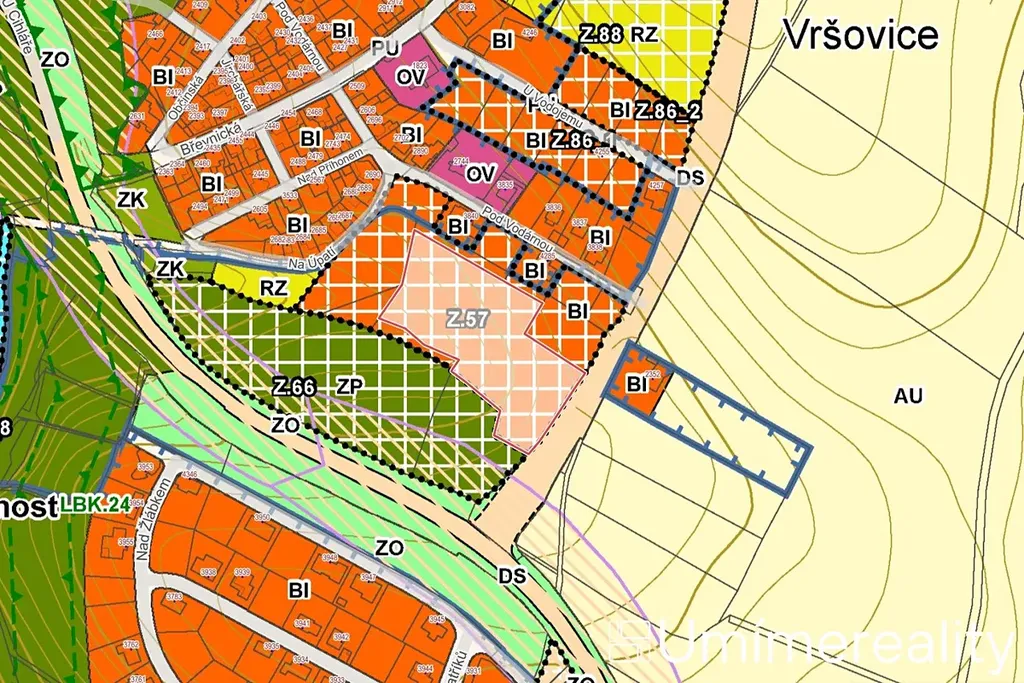 Hlavní využití dle územního plánu: plochy bydlení, individuální bydlení.