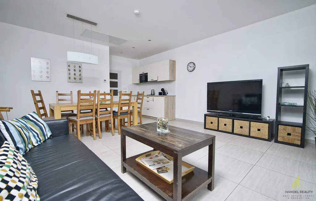 Každý z apartmánů má užitnou plochu 72 m² a praktické dispoziční řešení. V přízemí se nachází obývací pokoj s rozkládací sedačkou, TV a Wi-Fi, na který navazuje plně vybavený kuchyňský kout s varnou deskou, mikrovlnnou troubou, lednicí, myčkou a kompletním nádobím. Na tomto podlaží je také ložnice s manželskou postelí a koupelna se sprchou, toaletou a pračkou.
