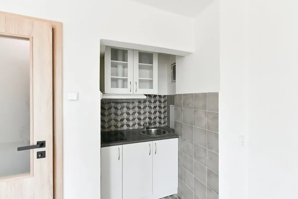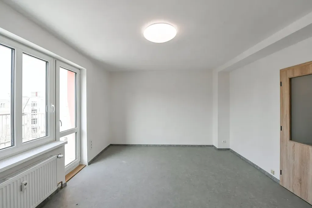 K dlouhodobému pronájmu nabízíme byt po rekonstrukci o velikosti 1+kk po kompletní rekonstrukci v 6. NP činžovního domu na nám. Jiřího z Lobkovic.