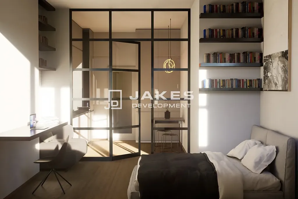 Jednotka bude dokončena ve vysokém standardu. Interiér nabídne dřevěné podlahy, kvalitní sádrové omítky, bezfalcové interiérové dveře, skryté garnýže a podhledy v obývací části, které podtrhnou čistý a moderní charakter prostoru. Příjemnou atmosféru doplní ambientní osvětlení a připravena bude také infrastruktura pro systém chytré domácnosti.
