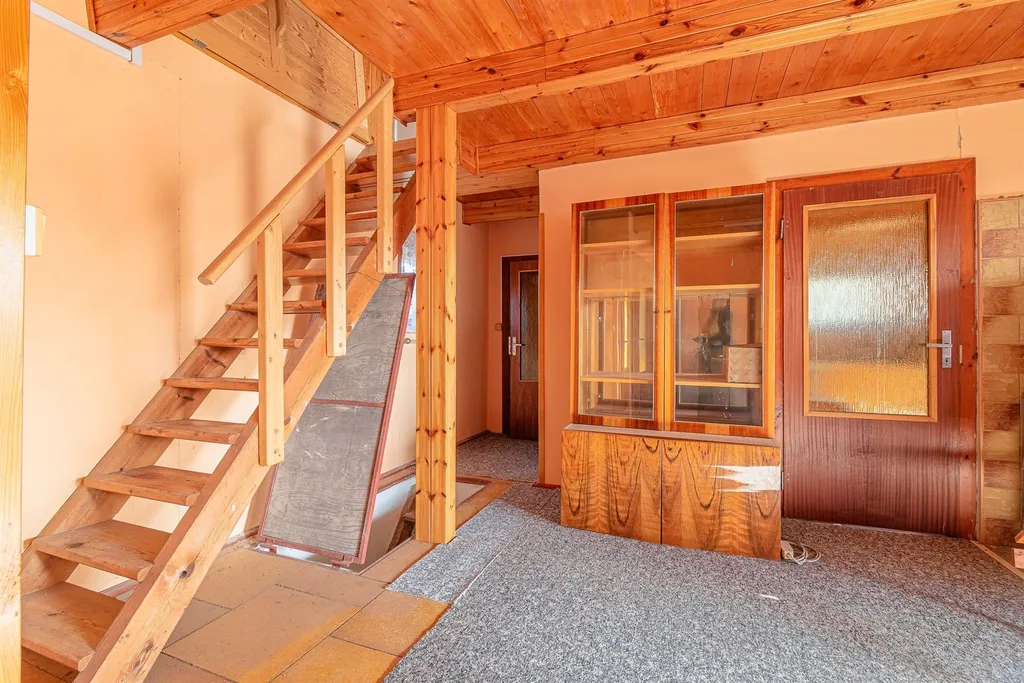 Technické: střecha sedlová, krytina plech, okna dřevěná, 2 x terasa, garáž s dílnou.