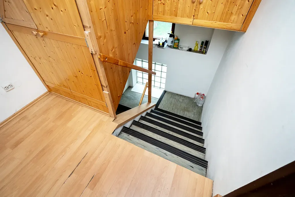 Světlý a prostorný interiér patrového domu o rozloze 280 m2 nabízí dvě na sobě nezávislé bytové jednotky 3+1 v přízemí a 2+1, kde kromě těchto plně hodnotných místností lze vybudovat ještě dvě další. Dům je kompletně podsklepený, což poskytuje dostatek úložného prostoru a umístění pro plynový kotel a kotel na pevná paliva, zajišťující účinné vytápění a ohřev teplé vody. V suterénu je ještě kromě kotelny a místností na potraviny prostorná dílna.