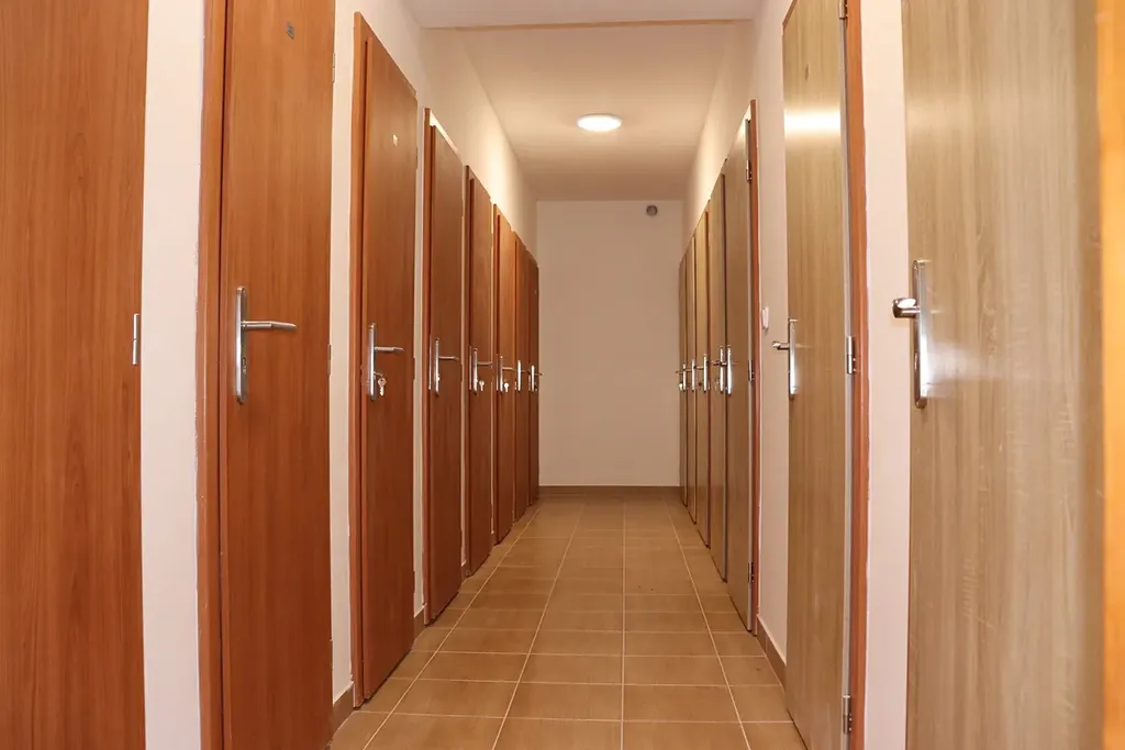 Kuchyňská linka je vybavena malou vestavěnou lednicí. Sporák není součástí kuchyňské linky, ale po dohodě s majitelem bytu lze dovybavit.