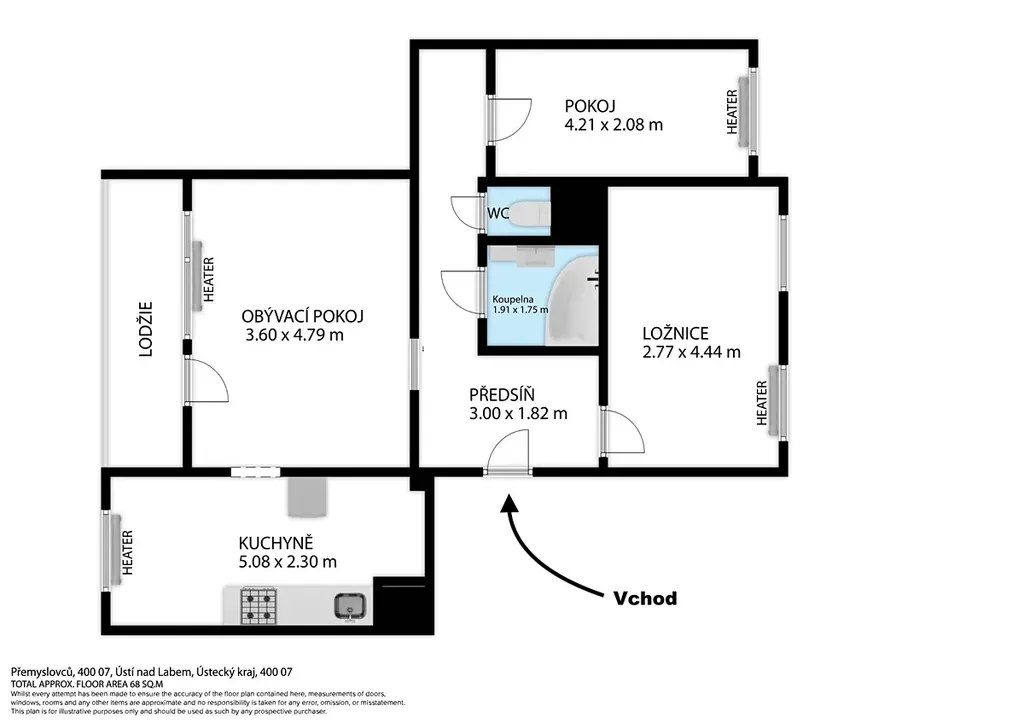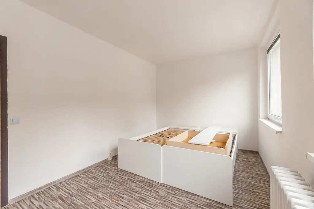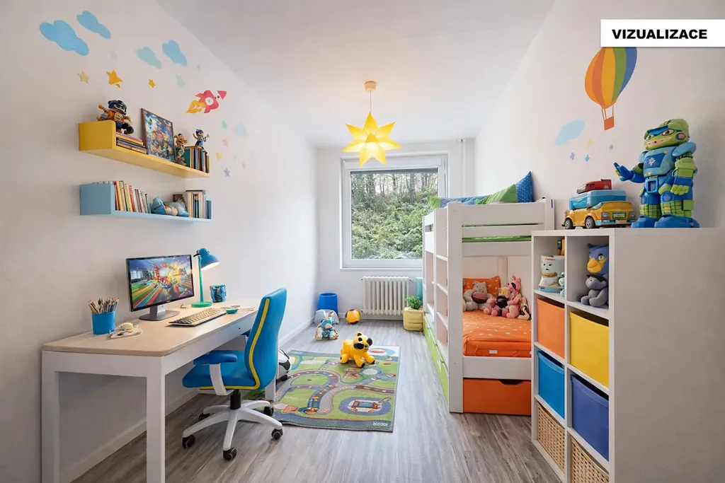 Na kuchyň navazuje prostorný obývací pokoj s lodžií. Oba další pokoje mají samostatné vchody, nejsou průchozí. Ve větším z nich jsou 2 okna.
