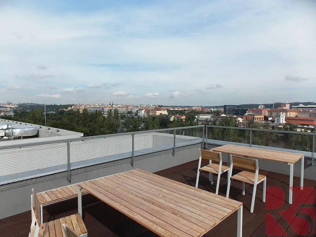Nabízíme Vám k pronájmu nový byt v komplexu Port Karolina v ulici U Mlýnského kanálu. Byt je umístěn ve 4. patře. Dispozičně je řešen jako prostorná bytová jednotka 3+kk. Ze vstupní chodby je přístup do velké komory, dále do pokoje s lodžií a výhledem na Vltavu a Holešovice. Dále je z chodby vstup do ložnice, která má samostatnou koupelnu se sprchovým koutem a toaletou. Ložnice je stejně jako předchozí pokoj orientována na severní stranu. V bytě je další společná velká koupelna s vanou a dvěma umyvadly a další samostatné WC. Z chodby je dále přístup do velkého obývacího pokoje s lodžií, orientovanou na jižní stranu. V pokoji je sestava kompletně vybavené kuchyňské linky. V celém bytě jsou venkovní elektricky ovládané žaluzie. K bytu dále náleží garážové stání v suterénu domu a za stáním je sklepní komora. V domě jsou k dispozici společné prostory, kočárkárna, kolárna, mycí box na kola a společná terasa na střeše domu s panoramatickým výhledem na celé okolí. Lokalita je kompletně vybavena vším potřebným a stanice metra Křižíkova je vzdálena jen kousek od domu. Za domem je cyklistická a běžecká stezka. Pokud hledáte nové bydlení k pronájmu v této lokalitě, domluvte si osobní prohlídku.