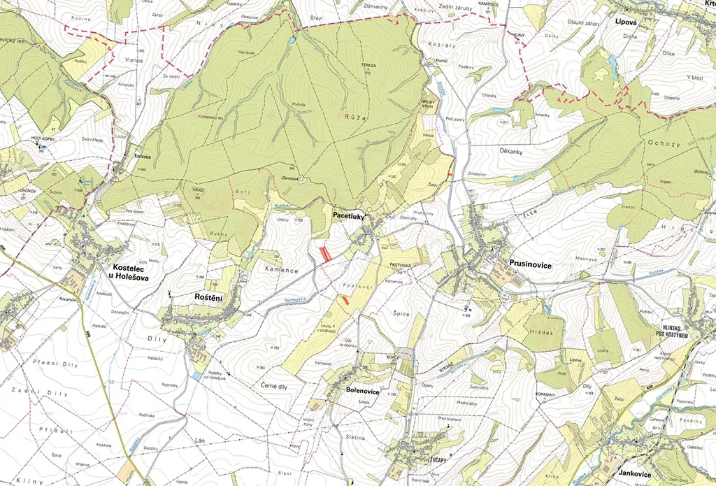 - LV 299 pro katastrální území Pacetluky: parcely č. 430/9 (trvalý travní porost) a č. 479 (orná půda),