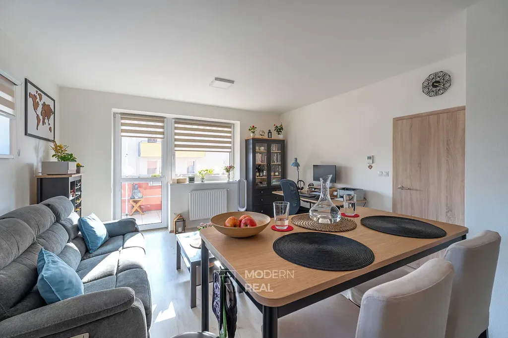 Nabízíme k prodeji novostavbu bytu 2+kk z roku 2018, situovanou na ulici Chudčická v Brně, v části obce Žebětín. Byt se nachází ve 2. patře pětipodlažního cihlového domu s výtahem a má celkovou užitnou plochu 50 m². K bytu náleží terasa o velikosti 14 m², vybavená markýzou, která poskytuje příjemný prostor pro odpočinek. Dále je součástí bytu sklep o velikosti 2 m².