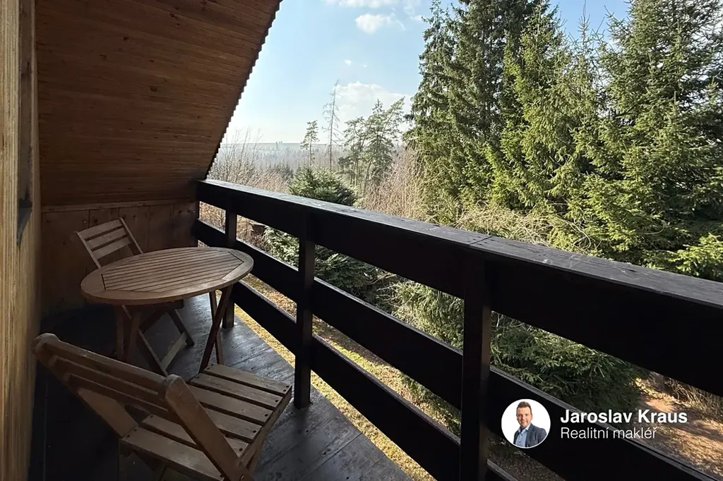Chata má dvě podlaží a nabízí příjemné zázemí pro rekreaci. V přízemí vás hned před vstupem přivítá zastřešená terasa (11 m2), která přímo vybízí k posezení při pohledu do okolní přírody.