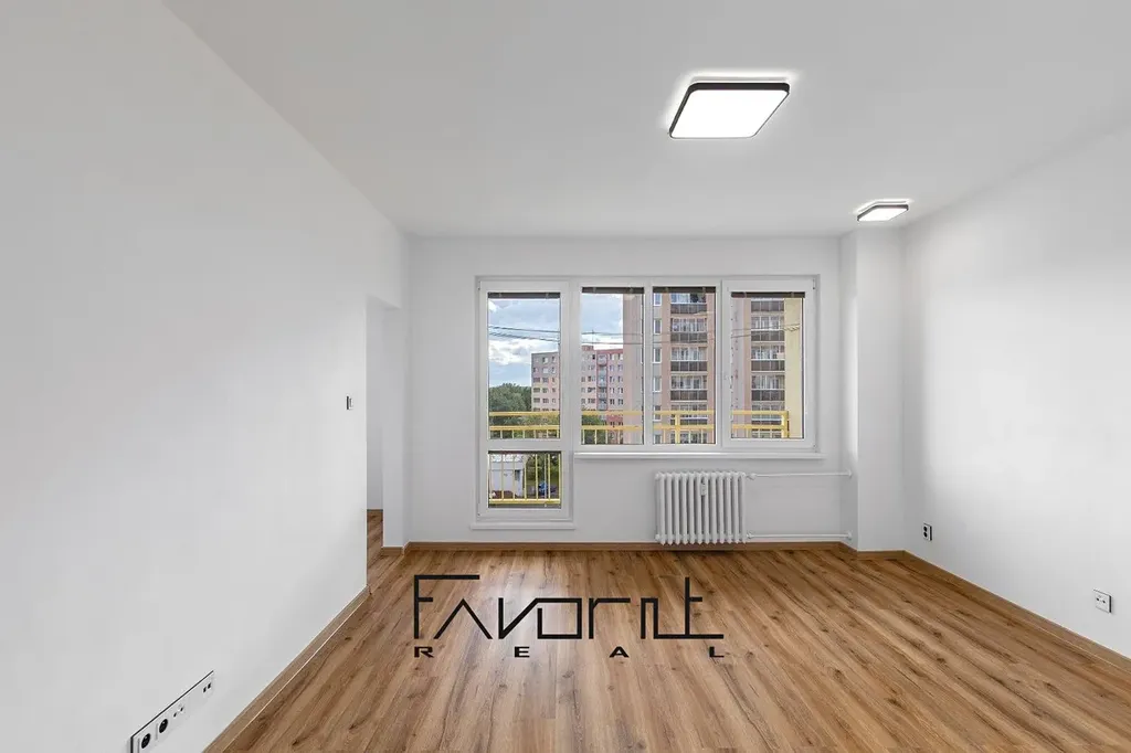 Dispozice bytu je velmi praktická – prostorný obývací pokoj, dvě neprůchozí ložnice, koupelna, samostatné WC a vstupní chodba s dostatkem úložného prostoru. Byt je velmi světlý a působí vzdušně.