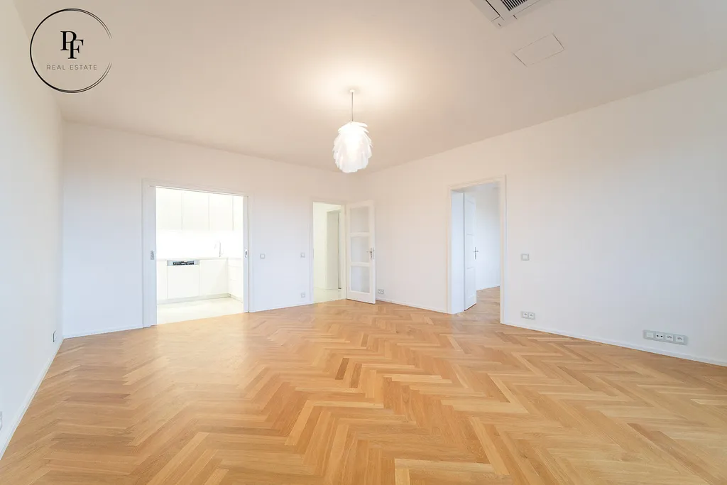 K dlouhodobému pronájmu je k dispozici prostorný byt 3+kk o celkové ploše 104,5 m² s vlastní garáží o velikosti 18 m², sklepní kójí o velikosti 6,5 m² a možností využívání dlážděné terasy k posezení o velikosti 12 m². Byt se nachází v jedné z nejvyhledávanějších pražských rezidenčních lokalit, v klidné vilové čtvrti Hanspaulka, v ulici Vostrovská, Praha 6 – Dejvice.