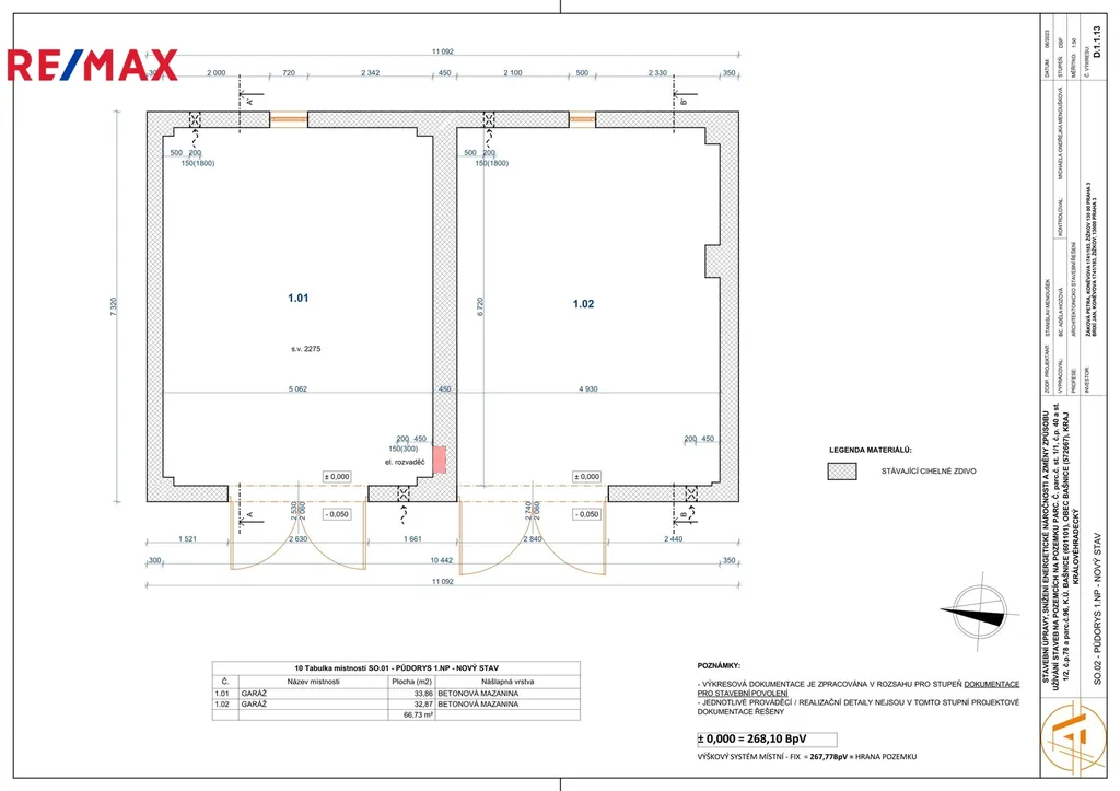 zastřešené parkování / otevřená garáž: 22,8 m²
