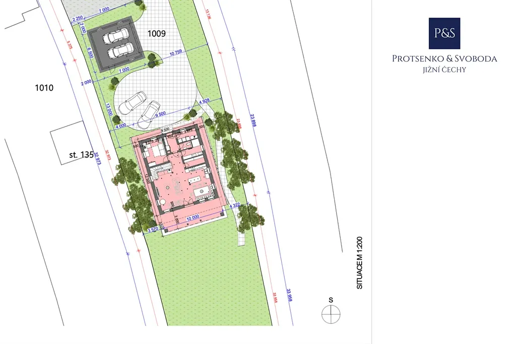 Pozemek bude předán osázený živými ploty (bobkovišně), novými stromy a dokončenými chodníky i příjezdy.