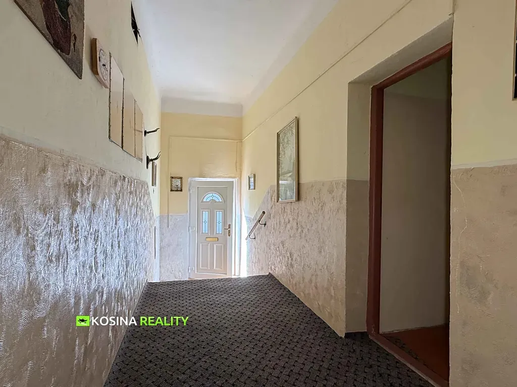 Nabízím k prodeji rodinný dům s možným komerčním prostorem a malou zahradou. Jedná se o rodinný řadový dům na ulici Maxima Gorkého v centru města u městského úřadu. Jeho stáří je cca 100 let a kdysi bylo přízemí využívané ke komerčnímu účelu (Sazka). Nyní je komerční prostor nevyužívaný, samostatný vchod zazděný, majitel měl v plánu tyto prostory předělat na bydlení. V přízemí domu je chodba se vstupem do přízemních bytových prostor s předsíní, dvěma pokoji, kuchyní a koupelnou (73 m2). Z chodby v přízemí vede kameninové schodiště do druhého nadzemního podlaží, kde je předsíň, dva pokoje, kuchyně, koupelna s WC a technická místnost (95 m2). Z předsíně na tomto podlaží vede dřevěné schodiště do obytného podkroví, kde jsou tři pokoje (60 m2) a skladovací prostory (35 m2). Přízemí domu nebylo dlouho využívané, nevětrané a je zde poměrně vlhkost. Vytápění v přízemí není řešené. Druhé nadzemní podlaží bylo užívané, je udržované a vytápěné ústředním topením napojeným na plynový kotel, ohřev teplé užitkové vody je elektrickým bojlerem. Obytné podkroví je delší dobu bez rekonstrukce, vytápění zde není a sociální zařízení také ne. Díky svému velkému prostoru je toto podkroví zajímavé. Dům má většinu plastových oken z pokojů na jižní stranu, proto je dům prosvětlený a teplý. Na severní straně domu je malá zahrada (25 m2) a malý pozemek (31 m2), který je předmětem prodeje. Dům je celý podsklepený, je napojený na kanalizaci, elektřinu, vodovod a plyn. Průkaz energetické náročnosti budovy nebyl zatím dodán, proto uvádím tří PENB „G“. Pro více informací mě kontaktujte.