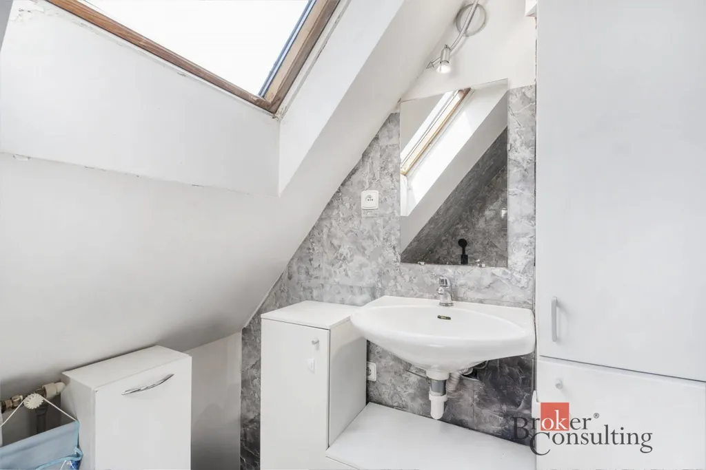 Byt se nachází v menší cihlové budově pouze se 6 bytovými jednotkami, což zaručuje větší klid a soukromí. Díky mezonetovému uspořádání působí byt velmi vzdušně a útulně. Ve spodním patře najdete obývací pokoj s kuchyní, ložnici, koupelnu, samostatné WC a chodbu. Horní podlaží nabízí další pokoj vhodný například jako pracovna, ateliér nebo klidný prostor pro home office.