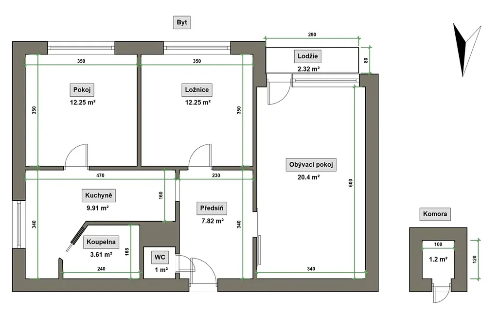 komory 1.2m² a klep 2m²)