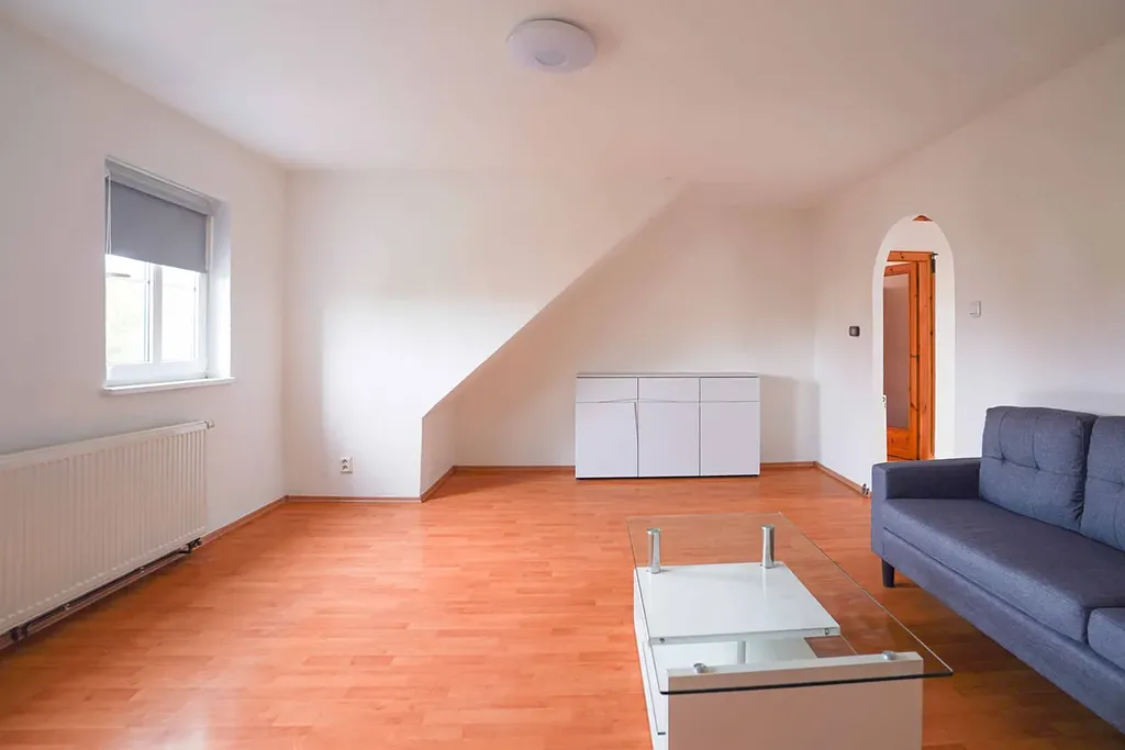 Prostorný podkrovní byt se nachází ve vile, je plně vybaven nábytkem a spotřebiči. Hledáme klidného jednoho nájemníka bez zvířat.
