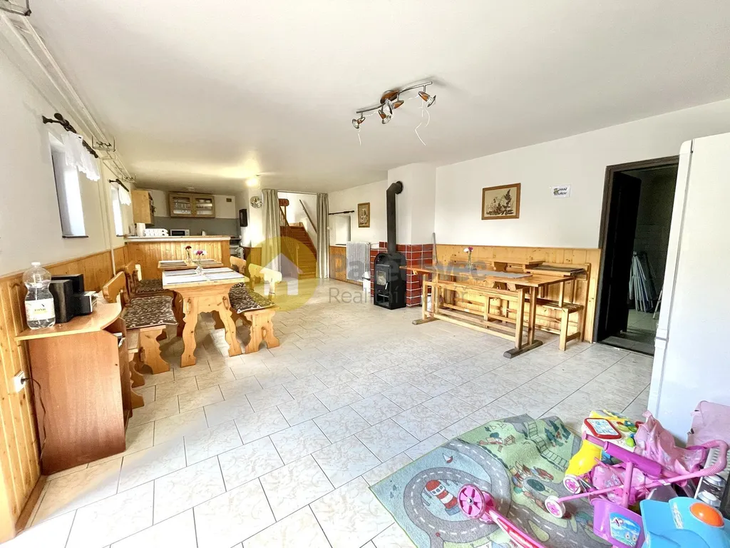 Dvoupodlažní dům sloužil dříve i jako restaurace (zůstalo zázemí kuchyně).