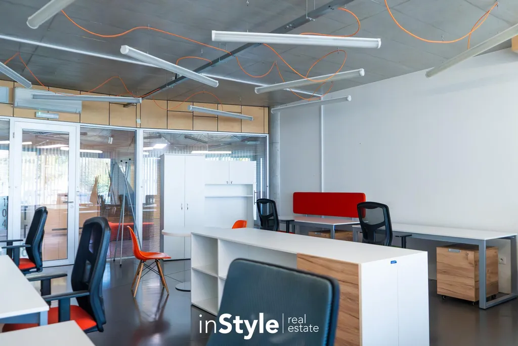 Prostory a kanceláře jsou vybaveny moderním nábytkem, pracovními stoly, židlemi, klimatizací a designovým osvětlením. Aktuálně je kancelář připravena pro využití až 8 osobami, ale nic nebrání i případnému rozšíření. Společné prostory budovy tvoří kuchyňka, sociální zázemí, sprcha, zasedací místnost i výtah.