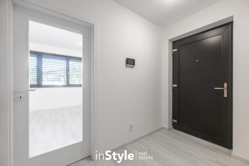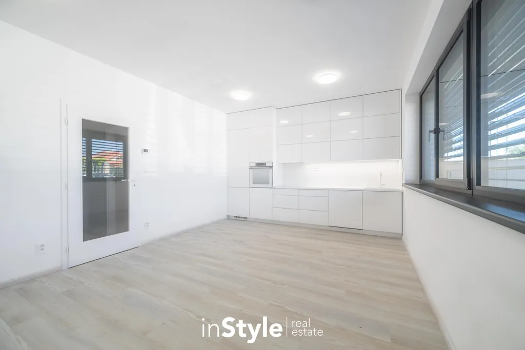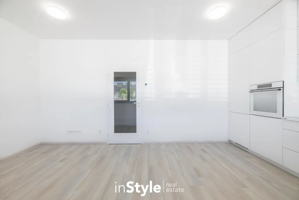 Byt nabízí podlahovou plochu 31,60 m2 a je vybaven designovou kuchyňskou linkou na míru od studia CASA GREY v ceně 200.000,- Kč s vestavnými spotřebiči GORENJE (lednice s mrazákem, myčka, dřez s baterií, indukční varná deska, digestoř a pečící trouba) a venkovními elektricky ovládanými žaluziemi. K bytu je dále podmínkou dokoupit vyhrazeného venkovní parkovací místo v hodnotě 350.000,- Kč.