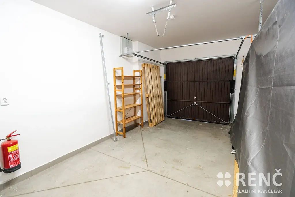 K bytu náleží garáž (polovina dvougaráže) o výměře 17,7 m2 umístěná v přízemí domu. Rozměry garáže: výška vjezdu je 2,05 m, šířka vjezdu je 2,2 m. Uvnitř garáže je výška 2,64 m, délka 6,13 m a šířka 2,8 m.
