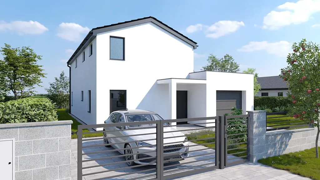 Dvoupodlažní dům "OPÁL" o rozloze 160,2 m² je ideální volbou pro ty, co hledají prostorné a pohodlné bydlení. Hlavní dominantou tohoto domu je prostorný obývací pokoj poskytující dostatek místa pro rodinné aktivity a společenské události. Dům dále disponuje praktickou garáží, která zajišťuje bezpečné parkování a úložný prostor. Ve spodním patře najdete pokoj, jenž je díky svému umístění ideální jako pokoj pro hosty nebo domácí kancelář. Horní patro nabízí dva pokoje s vlastní šatnou, což zvyšuje komfort a poskytuje dostatek úložného prostoru. Kromě toho je zde ještě jeden pokoj bez šatny, využitelný například jako dětský pokoj nebo pracovnu.