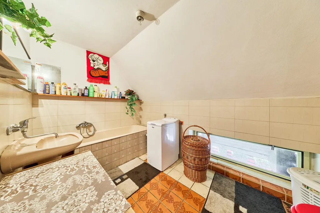 Suterén: sklepní prostory jsou prostorné, umístěné pod celým půdorysem domu a zahrnují velkou dílnu, 2 sklepy, kotelnu a prádelnu.