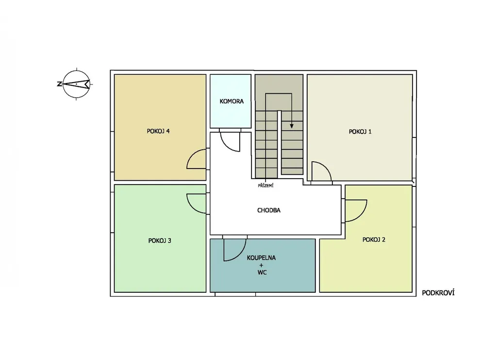 Podkroví: Celkem 4 samostatné neprůchozí pokoje, koupelna s wc, komora.