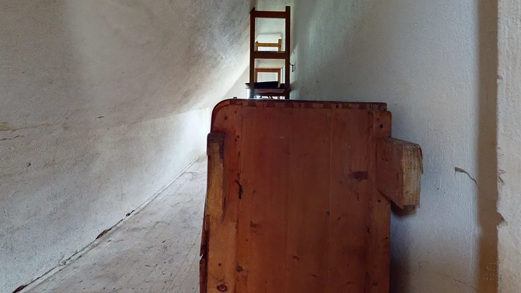 V patře jsou dva velké pokoje a menší dvě postranní místnosti s tím, že po úpravách se tato dispozice v patře může změnit. V posledním patře domu jsou pouze prázdné půdní prostory.
