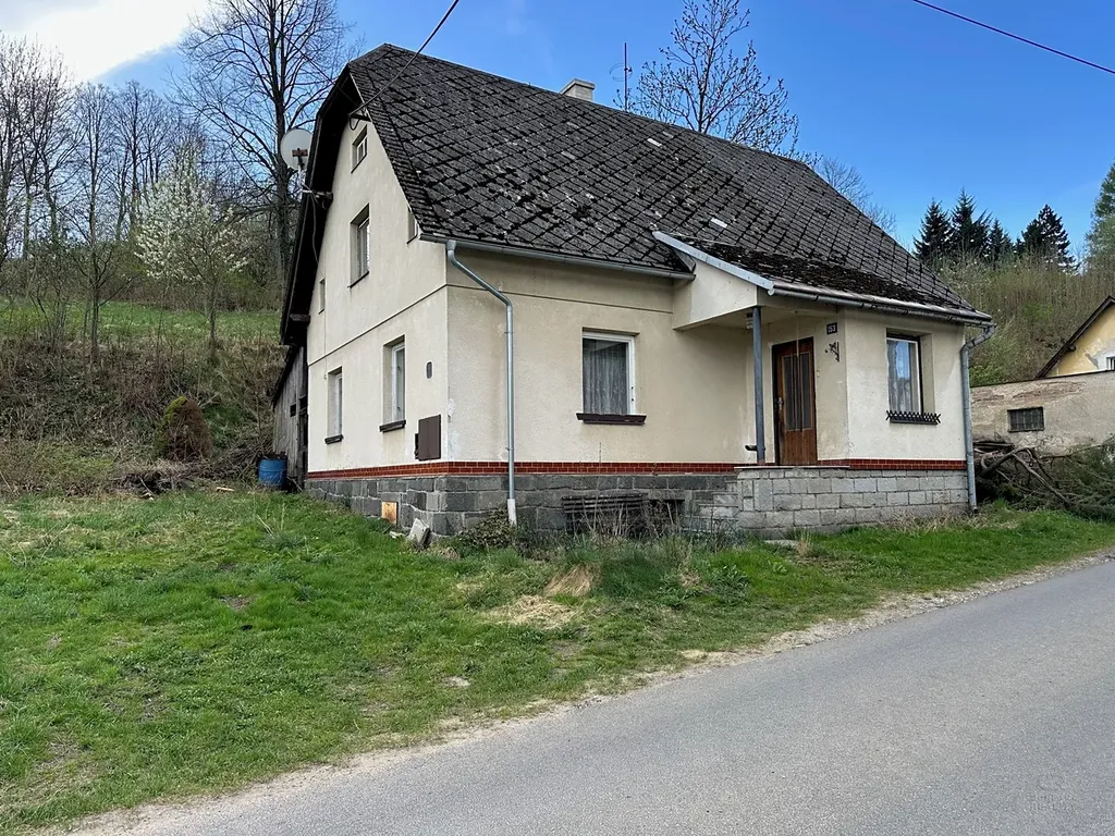 Nabídka rodinného domu s dispozicí 3+1 s menší zahradou a garáží ve vesničce Skorošice v okrese Jeseník.