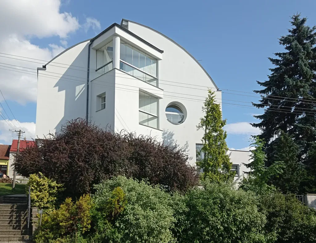 Dovolujeme si vám nabídnout zprostředkování prodeje rodinné vily s krásnou zahradou na náměstí městyse Křižanova, která splňuje nároky na kvalitní a příjemné bydlení. Původní jednopodlažní dům prošel několika přestavbami, kdy poslední rozsáhlá rekonstrukce byla zahájená v r. 1995. Výsledkem je moderní, nadčasový objekt ve stylu neofunkcionalismu. Díky svému umístění nabízí dům krásný výhled na historické náměstí. Jednou z předností tohoto třípodlažního podsklepeného domu s velkorysým obytným podkrovím a garáží, který je nyní koncipován jako vícegenerační, je jeho účelová variabilita. Dům je celý podsklepený. Samostatná část sklepních prostor se zvláštním vstupem ze zahrady je řešena ve formě tří místností (50 m2) s vytápěním, připravené pro praxi veterinárního lékaře. Prostory 1. NP jsou kompletně vybavené a připravené pro provozování lékařských ordinací, nabízí se tedy varianta podnikání (ordinace/ kanceláře) v kombinaci s luxusním rezidentním bydlením, a nebo investiční záměr s následným pronájmem. Ze vstupní haly je zajištěn oddělený přístup do obytné části domu tak, aby bylo zachováno soukromí majitelů a následně vstup do další části podlaží s nebytovým prostorem, nyní ordinací. 1. NP - vstupní chodba, dvě ordinace resp. kanceláře, čekárna, místnost pro zdravotní sestru, kuchyňka, sociální zázemí. V obytné části navazuje předsíň na prostornou obytnou halu s otevřeným vřetenovým centrálním schodištěm propojujícím jednotlivá podlaží. V jižní části domu s orientací do zahrady je řešeno propojení s nádvořím s venkovním posezením a krbem. 2. NP - byt 3+1 se zimní zahradou o celkové podlahové ploše 118 m2 + 32 m2 terasa. 3. NP – byt 3+1 (85 m2 + 7,5 m2 lodžie + 3,5 m2 balkon). Zastavěná plocha domem s nádvořím činí 465 m2, celková výměra pozemku je 1395m2. Rekonstrukce domu zahájená v roce 1995 byla provedena dle návrhu architektonické kanceláře, kdy byla majiteli požadována celková změna koncepce stávajícího domu na architektonicky zajímavou a moderní stavbu s použitím kvalitních, nadčasových designových materiálů. Ta zahrnovala přístavbu zahradního křídla s vybudováním prostoru pro ordinaci odborného lékaře včetně zázemí a kancelář, provedení nové vazby pro vytvoření podkrovního bytu s lodžií, osazení dubových dveří a atypických dubových oken s dvojskly, nové rozvody el. energie, vody, odpadů, vybudování centrálního otevřeného schodiště s mramorovým obkladem stupňů, rozvody podlahového el. topení doplněnými přímo topnými tělesy, nové dlažby a povrchy podlah, vybudování teras ( povrch přírodní kámen) se skleněnými posuvnými výplněmi. V roce 2010 byl proveden zateplovací systém, fasáda, klempířské práce, v roce 2024 nátěr fasády a střecha byla opatřená novým střešním pláštěm (svařovanou plastovou střešní fólií). Součástí kupní ceny je i vybavení domu designovým nábytkem, který splňuje záměr architekta na kvalitu a jednoduchost bydlení (viz fotodokumentace). Pečlivě udržovanou okrasnou zahradu se vzrostlými jehličnatými stromy, keři a květinami navazující na dům odděluje od užitkové zahrady moderní bungalov, který vznikl rekonstrukcí původní stodoly. Objekt o podlahové ploše 60m2 je možno vytápět samostatnými kachlovými kamny na elektřinu. Veškerá plocha zahrady je zavlažována automatickým systémem. Vydatným zdrojem vody je jednak vlastní kopaná studna na pozemku, jednak hlubinný vrt (33 m) - vše napojeno na závlahu ovládanou centrální jednotkou. Zahrada v celé své déle 90 m je oplocena masivní zdí z bílých cihel s kovanými plotovými prvky, vstupní branou a brankami. Inženýrské sítě: dům je napojen na veřejný vodovodní řad, na pozemku jsou další 2 studny Elektrická energie 230V, 400V, plynová přípojka v 1. PP, rozvod v domě není proveden, splašková i dešťová kanalizace napojena přes septik na veřejnou kanalizaci. Dům je vytápěn el. energií. V 1. NP přímo topná tělesa, 2. NP elektrokotel, 3. NP elektrické podlahové topení v kombinaci s přímo topnými tělesy, ohřev TUV zajišťují el. ohřívače. Zahrada i dům je v perfektním a udržovaném stavu, bez právních vad, vše vymalováno, uklizeno a připraveno k okamžitému prodeji a nastěhování. Více podrobných informací v RK. Městys Křižanov leží na hlavní trase mezi Brnem a Prahou, v srdci Českomoravské vrchoviny, s výbornou dostupností dálnice D1 (od Brna EXIT 164 Velká Bíteš 15km ) nebo od Prahy (EXIT 141 Velké Meziříčí 9 km) a současně s možností využití vlakového i autobusového spojení. Jedná se o městys s veškerým občanským vybavením (zdravotní středisko, základní a mateřská škola, restaurace, drobné obchody a služby, zájmové a sportovní organizace). Okolní krajina nabídne milovníkům přírody spoustu zajímavých turistických lokalit. V zimním období nabízí vyžití v lyžařském areálu v nedalekém Novém Městě na Moravě