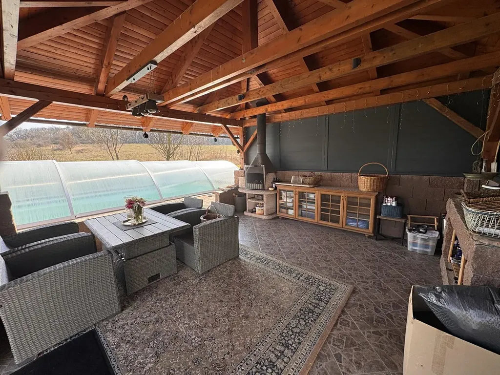 Na pozemku naleznete vyhřívaný krytý bazén o velikosti 27 m and sup2; pro maximální komfort a soukromí a altán s posezením, ideální pro relaxaci i společenské chvíle.