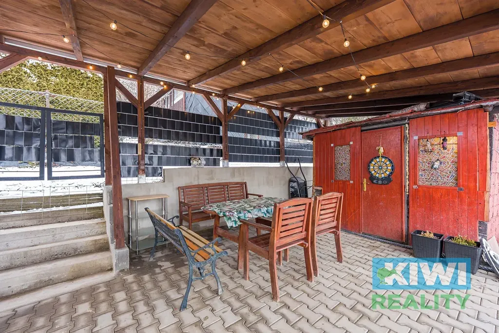 V ceně nemovitosti již máte zahrnuto jak vnitřní vybavení chaty, tak venkovní vybavení, jako je zahradní nábytek, houpačky, vířivka, zahradní náčiní, sekačka, gril i uzák.