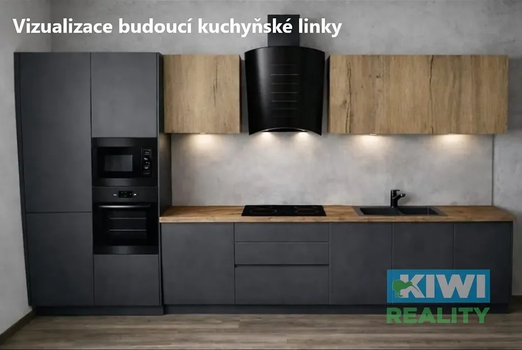 (návrh najdete ve fotogalerii), včetně horkovzdušné a mikrovlnné trouby, indukce, digestoře, dřezu s baterií a v rámci inzerované ceny je zahrnuta i nová americká lednice !