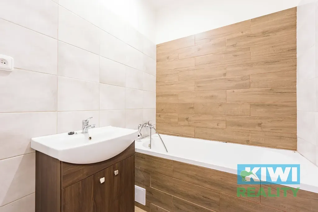 V rámci rekonstrukce bytové jednotky došlo k položení plovoucích podlah v celém bytě, v koupelně a na toaletě jsou podlahy keramické. Elektroinstalace je všude v mědi, doplněno bylo bodové osvětlení, nové jsou interiérové dveře a obložky, omítky. Ve vyzděné koupelně s keramickými obklady je usazena vana a koupelna je prakticky oddělena od toalety. Výhodou je dostatek úložného prostoru. Hned za vstupem do bytu je vybudovaná samostatná šatna a v předsíni najdete dva výklenky, které mohou být využity pro vestavné skříně.