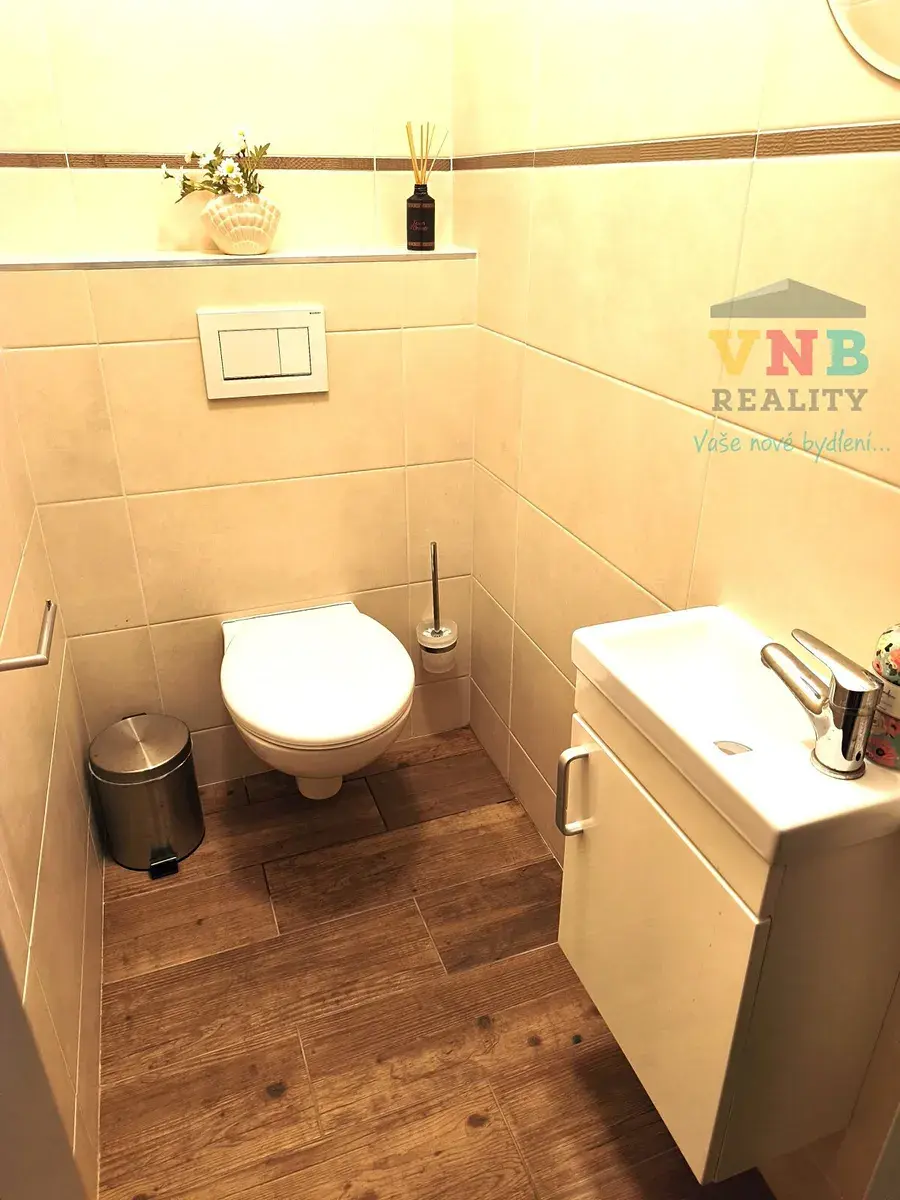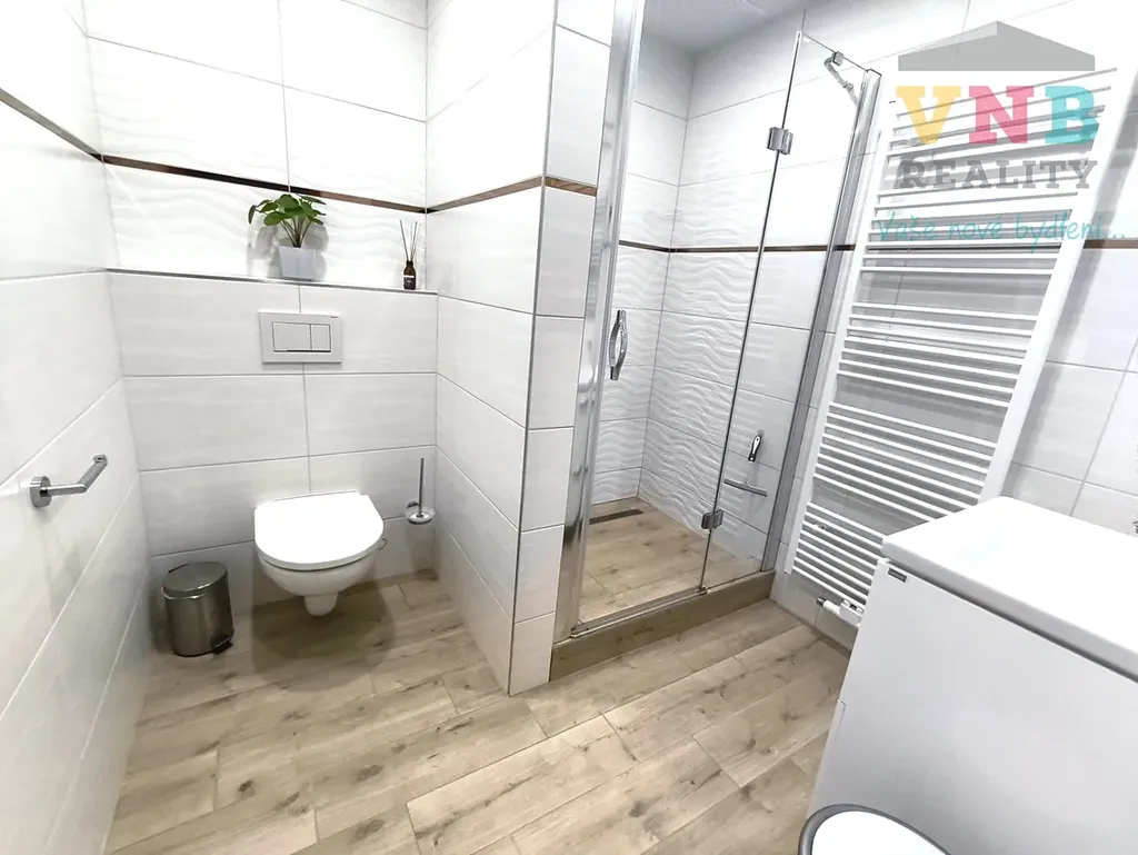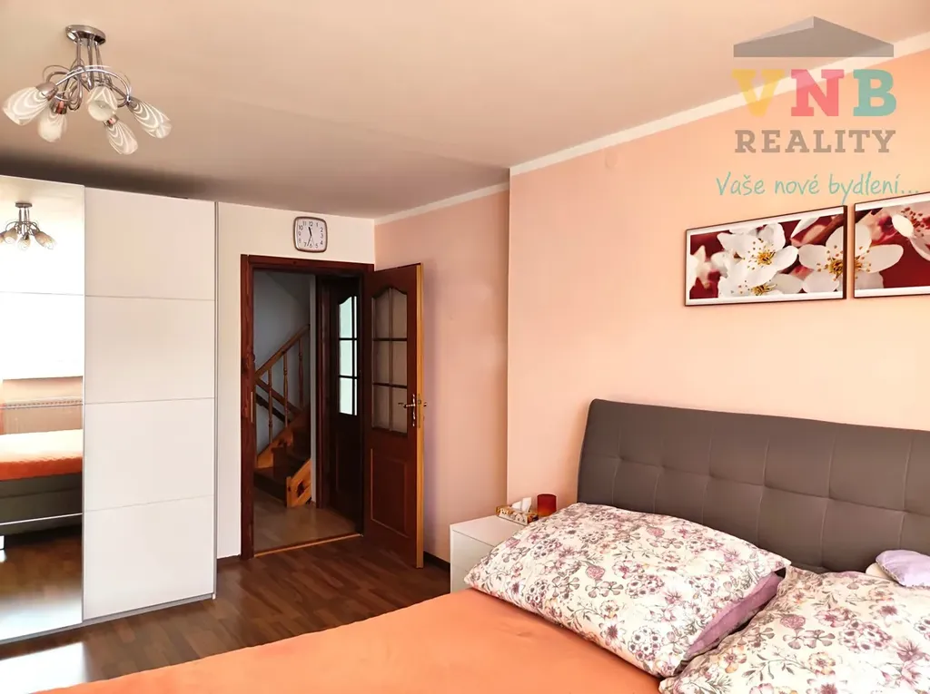 3NP: velká ložnice, pracovna/pokoj, velký pokoj pro hosty, nová koupelna se sprchovým koutem, umývadlovou skříňkou a s WC
