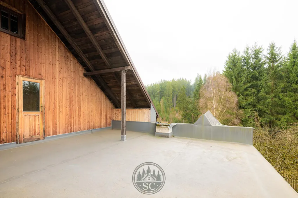 V patře pak najdete další dva pokoje, přičemž z jedné z místností je vstup do prostorné komory. Z chodby se vstupuje na terasu, ze které je krásný výhled na okolní krajinu. Zároveň je z chodby přístup do prostoru s přípravou na druhou koupelnu, kde jsou již připraveny rozvody vody, odpadu a elektřiny. Z chodby je také vstup na půdu. Horní patro tak nabízí zajímavý potenciál pro vybudování samostatného bydlení o dispozici 1+1.