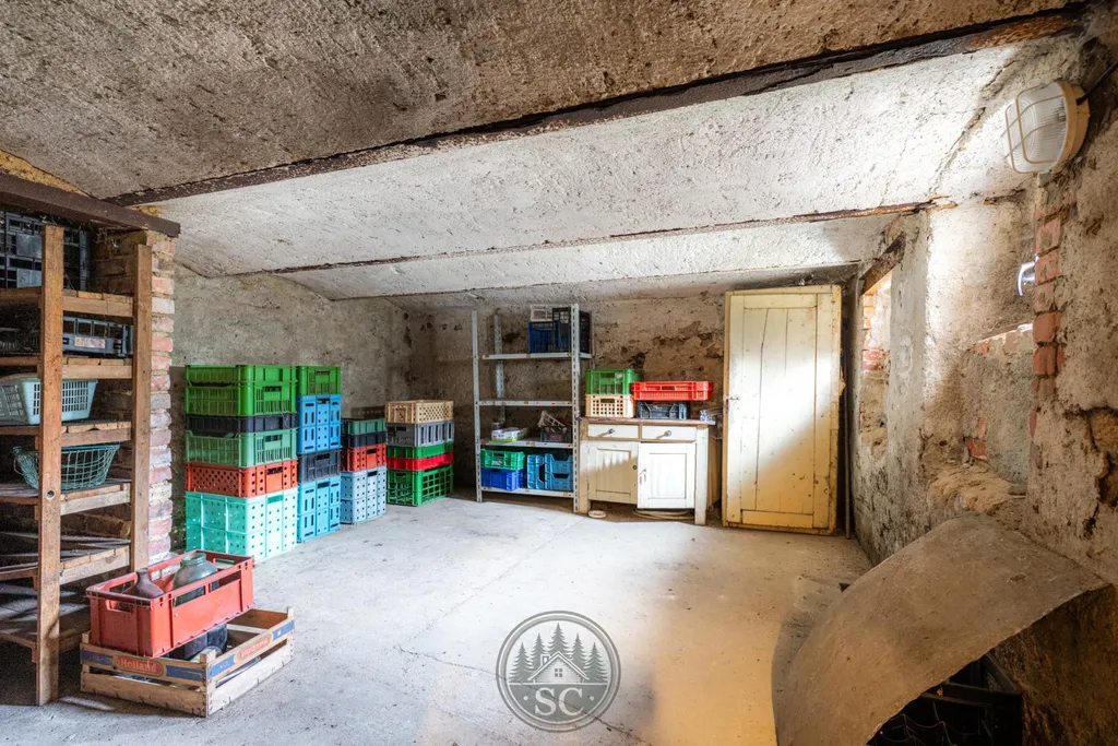 Součástí domu je také prostorná půda a suchý sklep, který nabízí ideální zázemí pro uskladnění zeleniny či jiných zásob.