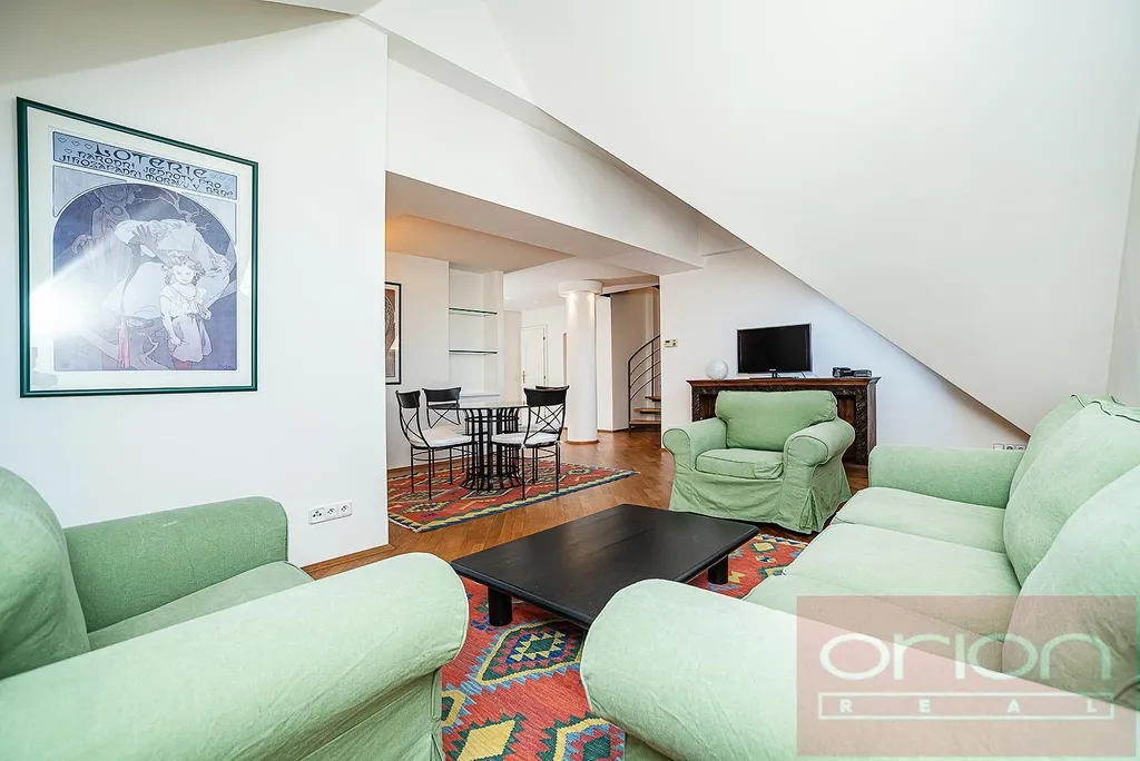 Luxusní, zařízený, mezonetový byt 3+1 v 5. a 6. patře zrenovovaného domu s výtahem a výhledem na Pražský hrad. Byt má celkovou plochu 108 m2 a nabízí v nižším patře vstupní chodbu, plně vybavenou kuchyň, obývací pokoj s jídelnou, ložnici se šatnou, koupelnu se sprchovým koutem, komoru. V horním patře je vstupní hala s vestavěnou skříní, velká ložnice se šatnou, koupelna s vanou a výhledem na Prahu. Pouze pár kroků od stanice metra Karlovo náměstí. V blízkosti je Václavské náměstí, základní škola, obchody a restaurace. K dispozici ihned.