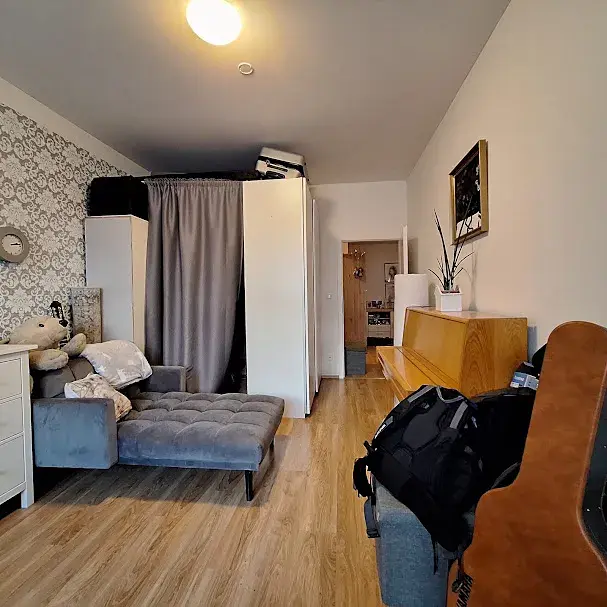 Byt se pronajímá částečně zařízený (bez nábytku). Kuchyně disponuje kuchyňskou linkou se spotřebiči (horkovzdušná el. trouba, varná deska, odsavač par, myčka, kombinovaná chladnička). Z chodby bytu se vchází do pokoje, který je hned vedle a samostatně umístěný. Okna bytu jsou směrem do zahrady. V koupelně je vana , otopný žebřík, umyvadlo a prostor na pračku (není součástí vybavení). Toaleta je umístěna samostatně. Součástí bytu je také komora/úložný prostor. Na podlahách byla použita dlažba a plovoucí podlaha. K bytu náleží sklepní kóje. Pohodové bydlení v žádané lokalitě s plnou občanskou vybaveností v bezprostředním okolí – obchody, služby, restaurace, kavárny. Pouze pár kroků od domu se nachází park Gröbovka a Havlíčkovy sady se známými vinicemi a vlastní produkcí vína. Výborná dopravní dostupnost – tramvajová a autobusová zastávka Krymská je vzdálena 3 min chůze, stanice metra A Náměstí Míru 1 stanici nebo 10 minut chůze od domu. Nedaleko je také stanice Nádraží Vršovice s návazností na tramvaje, autobusy i vlak.