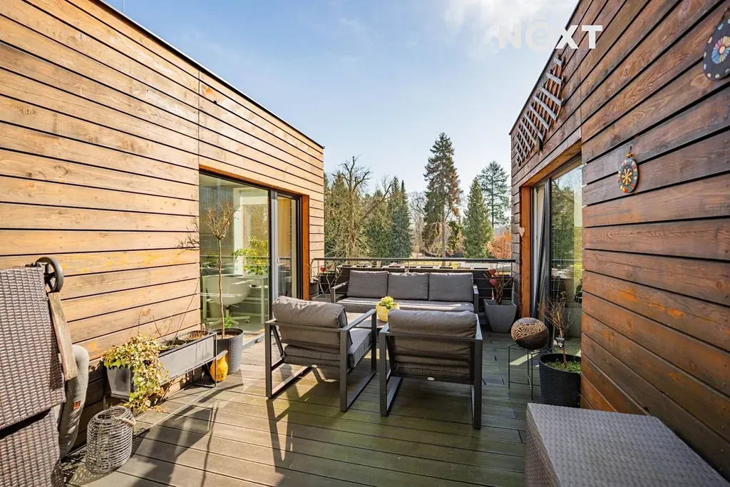 Velkou přidanou hodnotou bytu jsou dvě prostorné terasy, které dodávají bydlení jedinečný charakter. U vstupu do bytu se nachází terasa o velikosti 42 m², která vytváří příjemný a reprezentativní vstup do domova a umocňuje pocit bydlení v rodinném domě. Druhá terasa o velikosti 15,5 m² je přístupná ze tří místností a nabízí dostatek soukromí – ideální místo pro ranní kávu, večerní sklenku vína nebo klidný odpočinek.