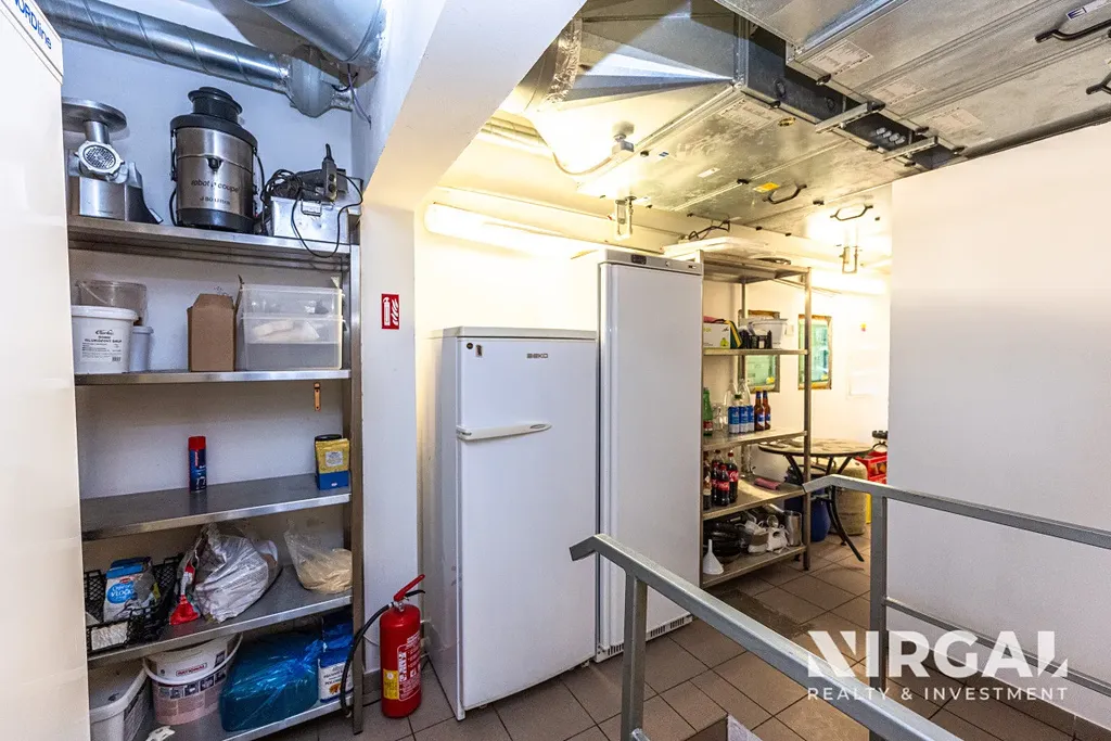Součástí pronájmu je plně vybavená profesionální kuchyně s kvalitní gastronomickou technologií, včetně konvektomatu, myčky nádobí, chladicích a mrazicích zařízení, výkonného sporáku a veškerého vybavení potřebného k okamžitému zahájení provozu. Nábytek a interiérové prvky jsou zahrnuty v odstupném.