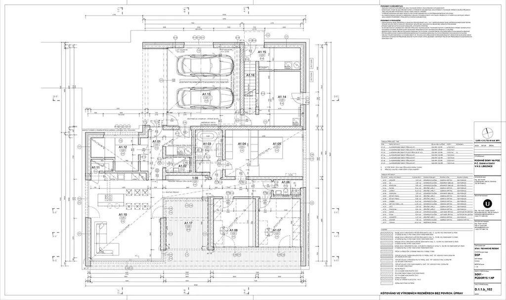 Celková plocha cca 288 m² (z toho interiér cca 227 m², garáž 41 m², terasy 86 m²), zastavěná plocha 300 m², zahrada 904 m², pozemek 1 216 m².