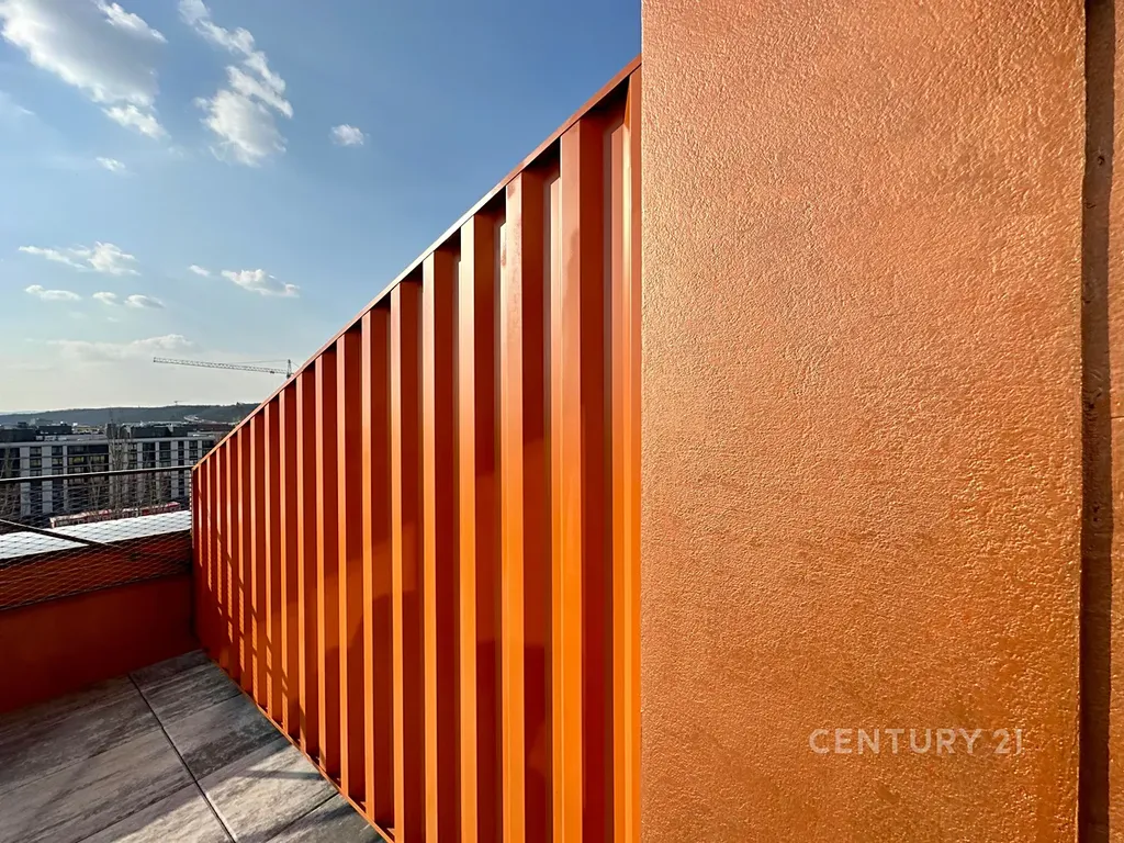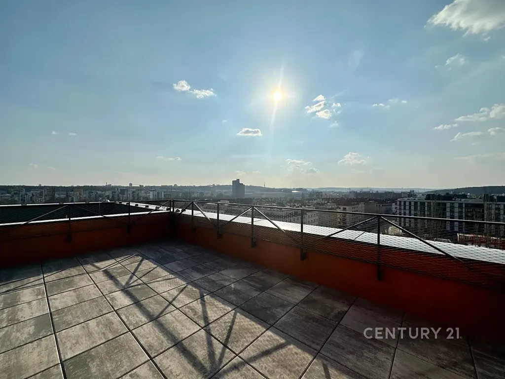 V zastoupení developera nabízíme k prodeji loftový byt 4+kk s balkonem (9 m2) a terasou (23 m2) s velkolepým 180 °C výhledem na Prahu. Byt je orientovaný na západní stranu, takže v jarních a letních měsících si tak můžete vychutnávat posezení se sklenkou dobrého vína při západech slunce nad krásnou Prahou. Byt disponuje dvěma koupelnami.