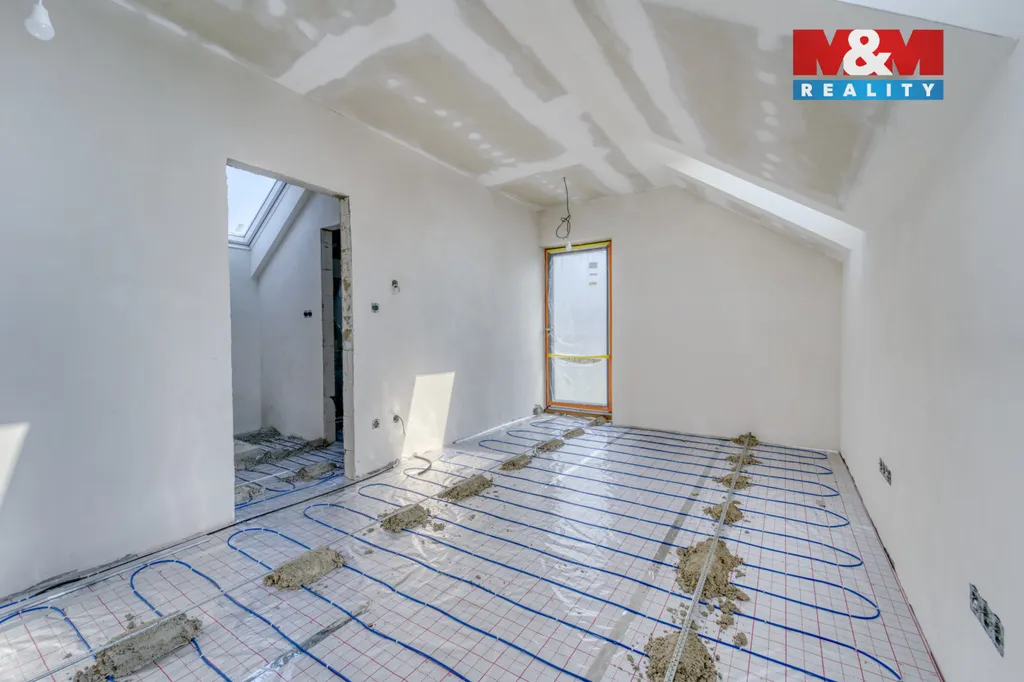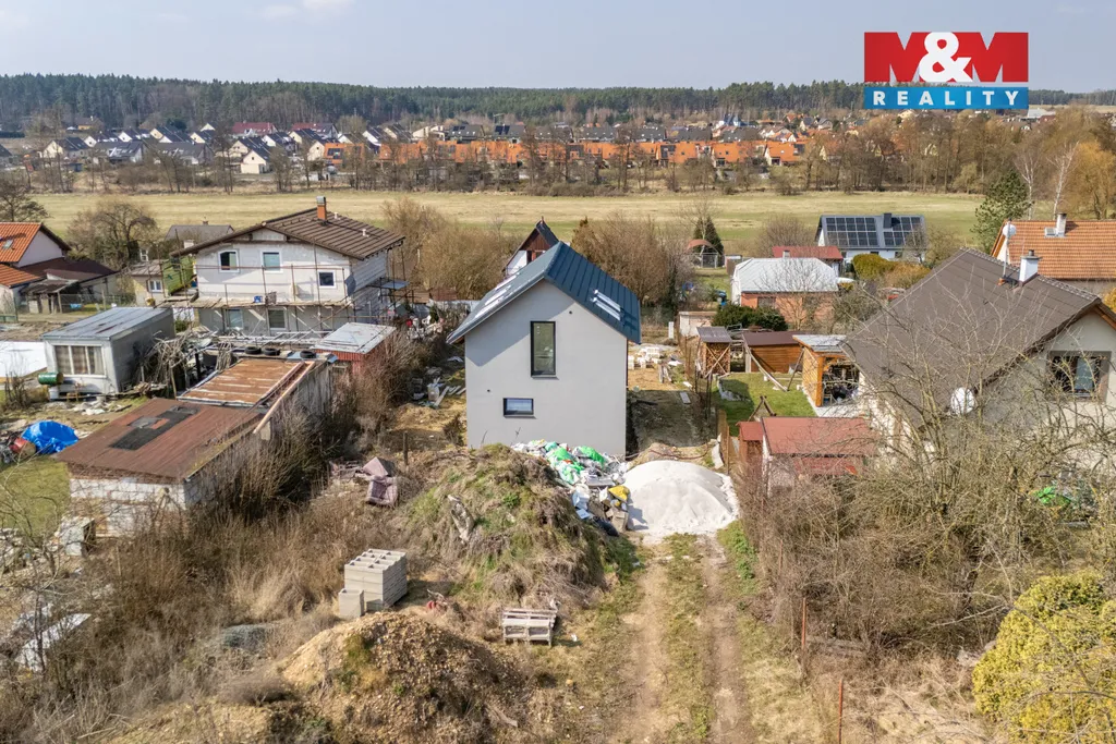 Nabízíme k prodeji prostornou novostavbu samostatného domu s číslem evidenčním (může zde být vedeno trvalé bydliště), v klidné části obce Šlovice u Plzně. Dispozičně je stavěno jako moderní 3+kk s velmi prostorným a světlým obývacím pokojem s kuchyňským koutem (cca 29 m2), dále je zde pak spodní koupelna, chodba a schodiště do horního patra. Tam pak nalezneme dva samostatné neprůchozí pokoje, a horní koupelnu, užitná plocha cca 85 m² a vlastní pozemek zhruba 505 m² (proběhne přesné vyměřování). Je stavěno v moderním standardu - konstrukce je z Ytongu, zateplení, fasáda, vytápění podlahou, klimatizace, izolační skla, aj. Koupelny budou při předání kupujícímu hotové, podlahy a dveře dle výběru klienta také. Ideální pro rekreaci i úsporné, ale komfortní trvalé bydlení v klidné rekreační lokalitě. Příjezd autem po obecní komunikaci. Plzeň je asi 15 min autem. Zavolejte o prohlídku či více informací.