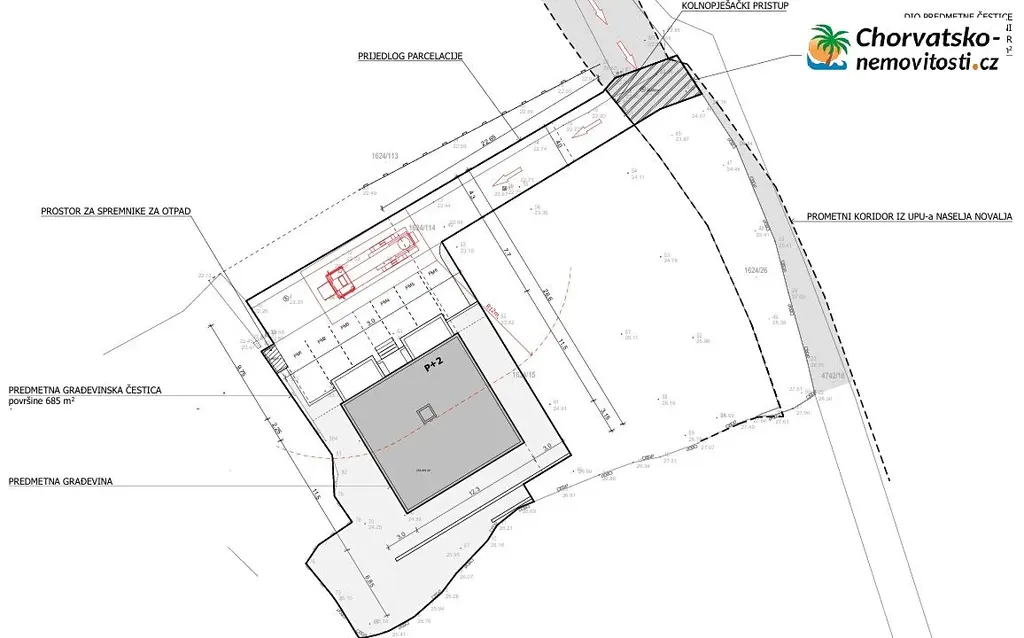Chorvatsko-Nemovitosti.cz dvoupokojový apartmán (A2) s celkovou užitnou plochou 59,43 m2 ve druhém patře moderní novostavby v Novalji.
